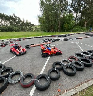 Circuito de karts de gasolina con motor Honda 120cc automático. En circuito hecho a medida con neumáticos, disponemos de hasta 6 karts.