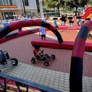 También existe la opción de hacerlo en circuito hinchable de 18 x 8 m. con capacidad para 2 karts. Totalmente seguros y con una aceptación del 100% entre el público infantil y juvenil.