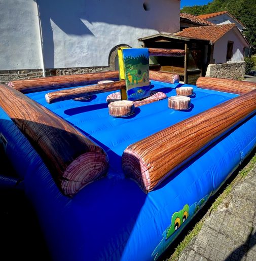 Hinchable barredora, en el que los niños tienen que evitar ser eliminados por los obstáculos móviles.